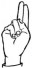 На ћирилици написано ПЕРИША ЈАЧОВАЦ састоји се из 13 слова [?]. Исписано ћириличном једноручном азбуком за глувонеме: